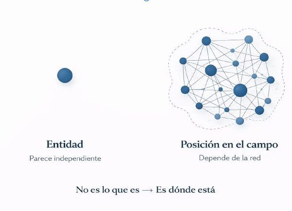 El campo no es un entorno, ni un contexto, ni un escenario en el que ocurren cosas. Es la propia realidad operativa del sistema en un momento determinado. Incluye las entidades que lo componen, pero también las relaciones que las conectan, las posiciones que ocupan y las condiciones que hacen posible que ciertas interacciones ocurran y otras no.