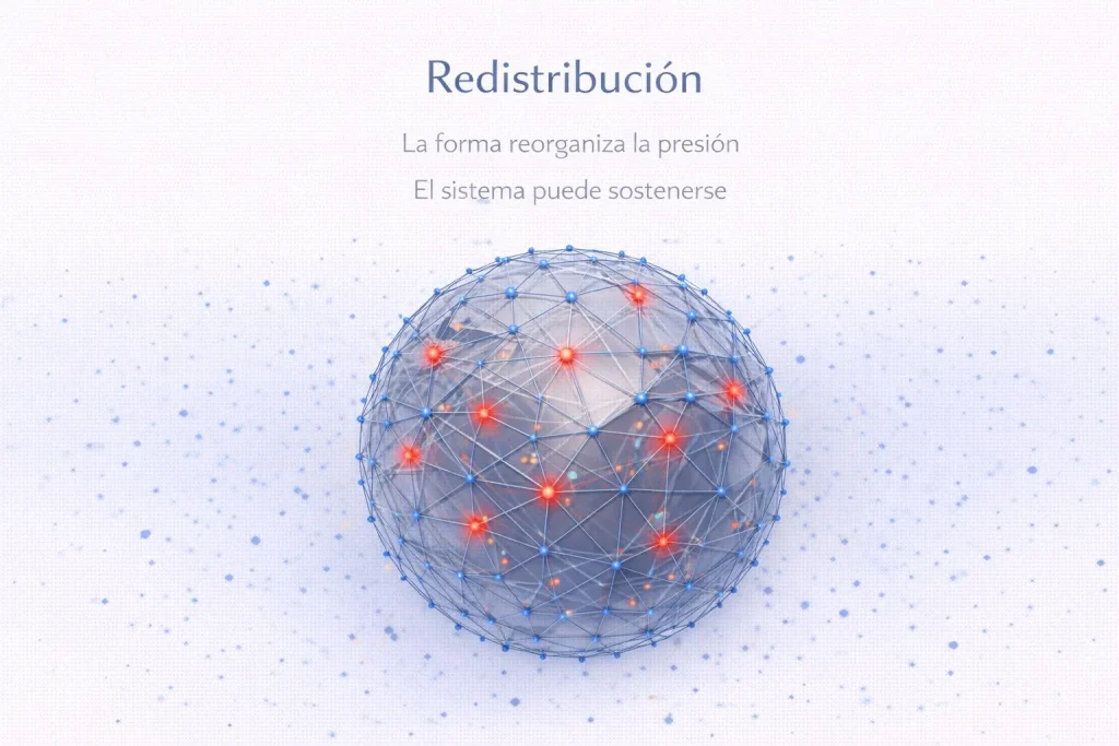 Esta idea es simple en su formulación, pero tiene consecuencias profundas. Significa que la estabilidad no depende de reducir presión, sino de organizarla. No depende de corregir fallos, sino de hacer que lo que empuja al sistema pueda desplegarse sin generar conflicto estructural.