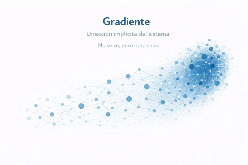 Hasta este punto, el análisis se ha desplazado progresivamente desde lo evidente hacia lo estructural. Hemos dejado de mirar elementos aislados, hemos reconstruido configuraciones y hemos introducido la idea de que todo sistema contiene una dirección de cambio que no es directamente visible. Sin embargo, en la práctica, nadie observa gradientes.